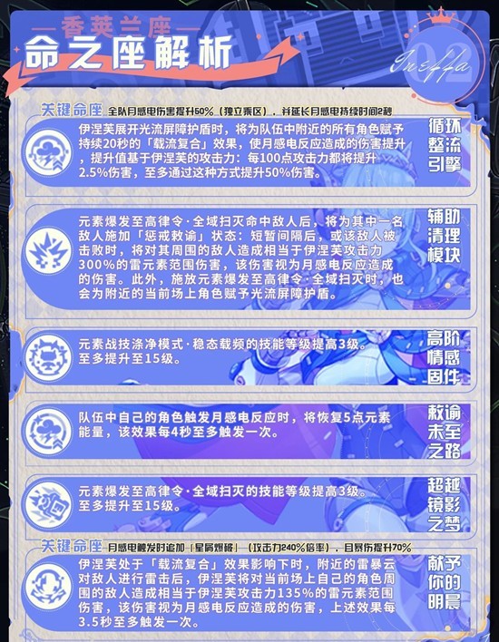 关键命座 全队月感电伤害提升60%(独立乘区),并延长月感电持续时间2秒