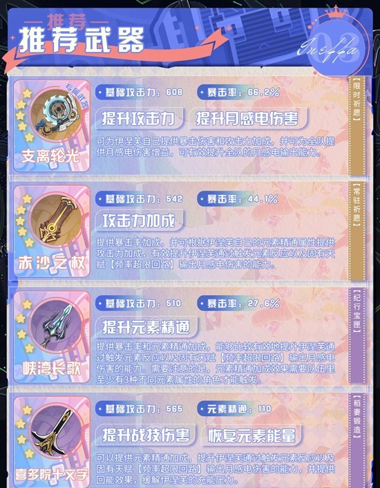 以上就是原神角色伊涅芙培养攻略,伊涅芙天赋配队武器推荐的全部内容了,更多游戏资讯,攻略内容敬请关注,您的支持是我们努力的动力!