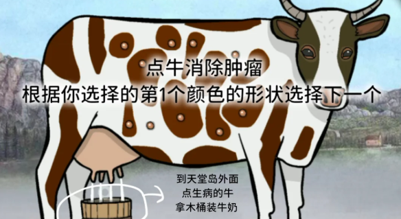 10、点击牛消除肿瘤,根据选择的第1个颜色的形状来选择下一个