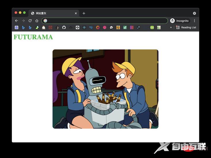 <body> <h1 class="title">FUTURAMA</h1> <img class="img" width="500" src="./images/futurama.png" /></body>