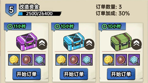 升级订单可大幅提高金币与兑换代币收益,前期金币获取渠道较少时可以将订单升到橙色品级或满级,主要获取金币收益,中后期根据公会币收益适当升级订单。每日根据资金等级的不同最高消耗600左右的钻石。