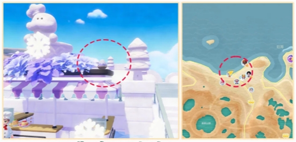 浅紫色破壳蛋仔拍照位置:马西莫摊位屋顶右上角(拍完照才会出现对应的家具泡泡)