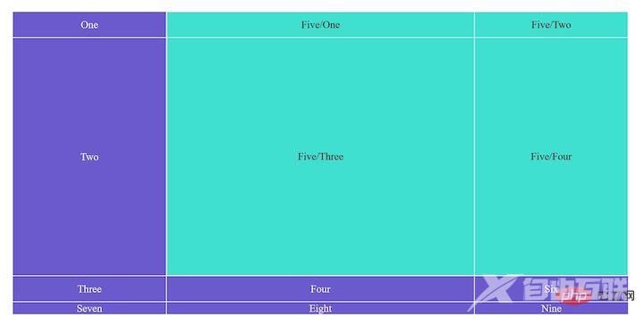 .grid-item { /* 这些规则指定子网格在布局中的位置*/ grid-column: 2 / 4; /* 两列垂直 */ grid-row: 1 / 3; /* 两行水平 */ /* 这些规则属于子网格本身 */ display: grid; grid-template-columns: subgrid; grid-template-rows: subgrid;}grid-column和grid-row属性定义了网格项目在网格列或行中的位置。 .grid-item的子元素将形成子网格。 一个网格项目可以跨越多个网格单元。 例如,这里它分布在四个像元上(在上面的示例中grid-column和grid-row的值是任意的)。