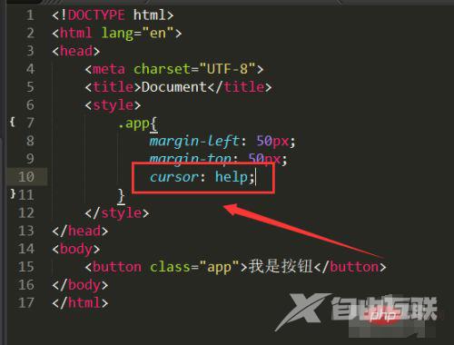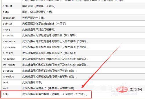 我们使用cursor属性对这个按钮进行属性修改,我们根据官方给出的属性,我们使用help这个值,详细如下图。