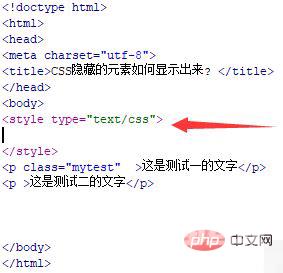 新建一个html文件,命名为test.html,用于讲解CSS隐藏的元素如何显示出来。