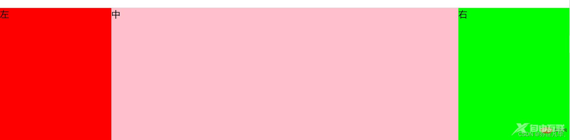 <style> *{margin: 0;padding: 0;} body{width: 100vw;height: 100vh;} .container{ height: 100%; width: 100%; } .container>div{ float: left; } .zhong{ height: 100vh; width: 100%; background-color: pink; } .zhong .main{ margin: 0 200px; } .zuo{ width: 200px; height: 100vh; background-color: #f00; margin-left: -100%; } .you{ width: 200px; height: 100vh; background-color: #0f0; margin-left: -200px; }</style></head><body> <div class="container"> <div class="zhong"> <div class="main">中</div> </div> <div class="zuo">左</div> <div class="you">右</div> </div></body>