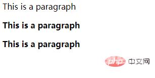 <html><head><style type="text/css">p.normal {font-weight: normal}p.thick {font-weight: bold}p.thicker {font-weight: 900}</style></head><body><p class="normal">This is a paragraph</p><p class="thick">This is a paragraph</p><p class="thicker">This is a paragraph</p></body></html>运行效果: