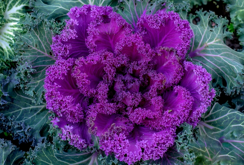 在中国,羽衣甘蓝被称为绿叶甘蓝或牡丹菜。作为甘蓝的园艺变种,其叶片形态多变,叶色丰富,在冬季花卉稀少时是布置花坛的优质材料。