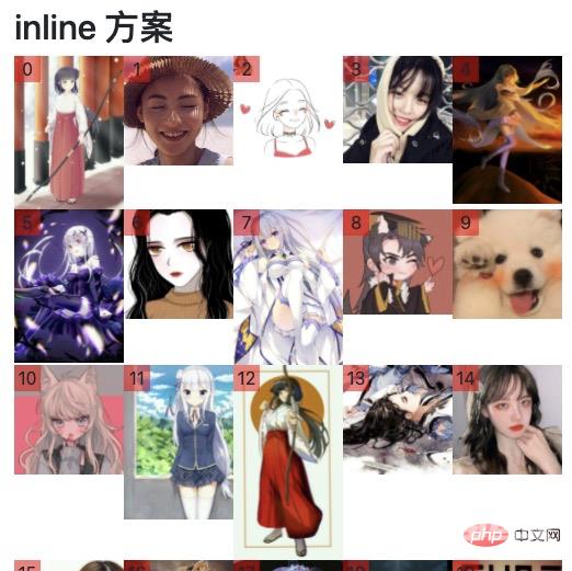 DOM 结构div.list // 设置 gird 或者 block,注意清除浮动 div.item // 设置为 inline 或者 float,使其能流动 img // 设置定宽,高度自适应,间距等。grid 方案说明