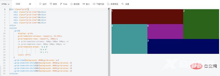 .wrap-waterfall--grid img{vertical-align: top;width: 100px}.wrap-waterfall--grid .list{ display: grid; grid-gap: 10px; /* 可以看到,网格大小,占据位置是需要提前设定的 */ grid-template-columns: repeat(4, 1fr); grid-auto-rows: minmax(50px, auto);}grid 在某些情况下会比 flex 好用。比如说需要突破行的限制,但是只适用于固定布局,如下图的布局,如果不使用grid你会如何实现呢?