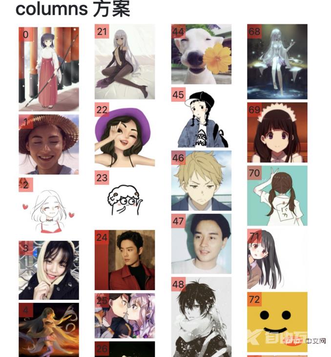 columns、flex CSS实现 不靠谱方案也是纯 CSS 方案,相比较上面的方案而言,方案已经可以接受,只是还有部分问题。