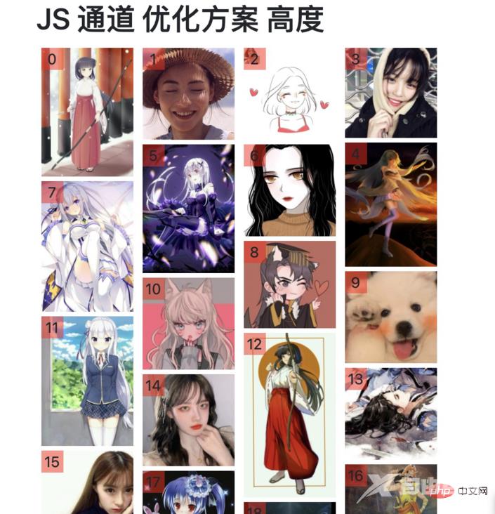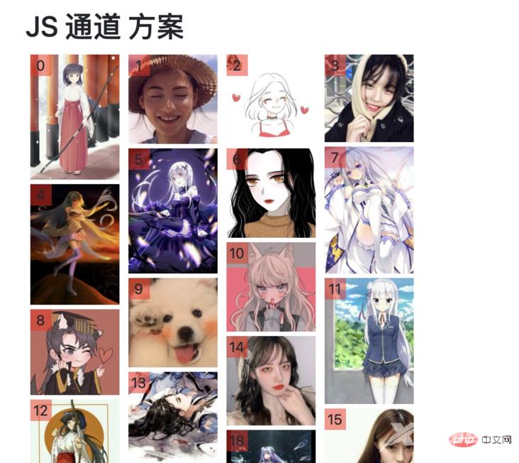 根据下标,来渲染到不同的通道 idx % 4因为上个方案用到了绝对定位,那么有没有不用绝对定位的方案呢?回到我们的问题点上 定宽,不定高,那我们完全可以通过分开渲染放弃 absolute 来实现。