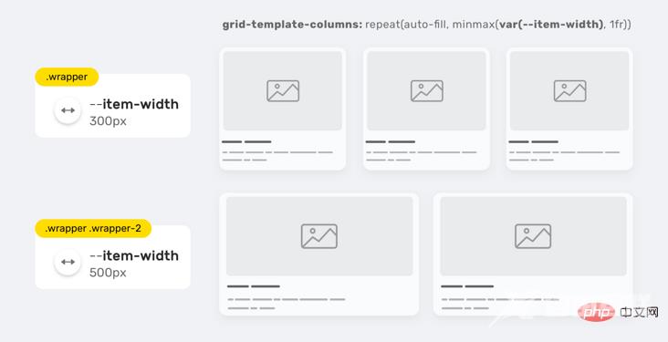 .wrapper { --item-width: 300px; display: grid; grid-template-columns: repeat(auto-fill, minmax(var(--item-width), 1fr)); grid-gap: 1rem;}.wrapper-2 { --item-width: 500px;这样,我们可以创建一个完整的网格系统,该系统灵活,易于维护,并且可以在其他项目中使用。 可以将相同的概念应用于grid-gap属性。