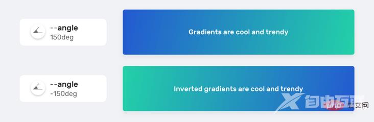 .element { --angle: 150deg; background-image: linear-gradient(var(--angle), #235ad1, #23d1a8);}.element.inverted { --angle: -150deg;}