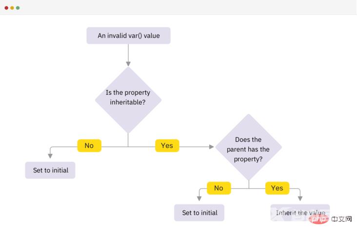 当var()函数中的CSS变量无效时,浏览器将根据所使用的属性用初始值或继承值替换。