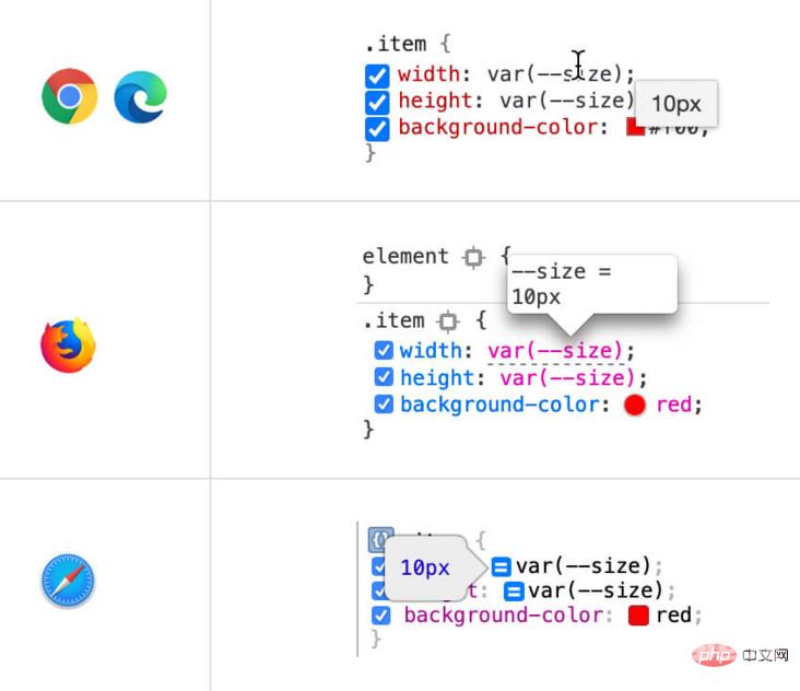 使用CSS变量时,看到颜色或背景值的视觉指示器是否有用? Chrome和Edge证明了这一点。