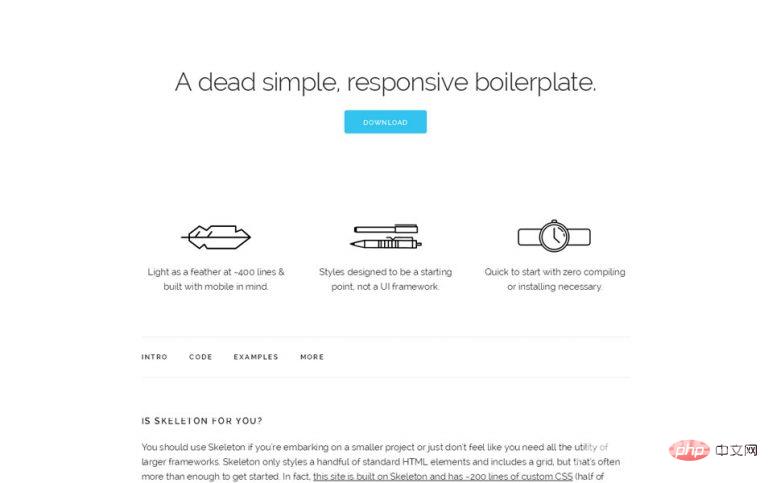 如果你要开发较小的项目,或者只是觉得自己不需要大型框架的所有实用工具,则可以试试 Skeleton。Skeleton 仅设置了少量标准 HTML 元素的样式,并包含一个网格。