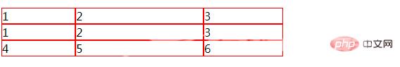为了便于观察,均设置所有案例表格为1px实线红色边框为例;table宽度为400px;表格为三列三行,对以上情况表格外层加个p盒子,分别命名为“.table-a”、“.table-b”。