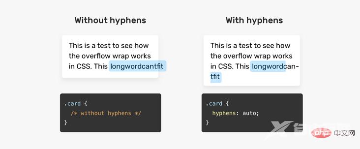 CSS 属性 hyphens 告知浏览器在换行时如何使用连字符连接单词。可以完全阻止使用连字符,也可以控制浏览器什么时候使用,或者让浏览器决定什么时候使用。