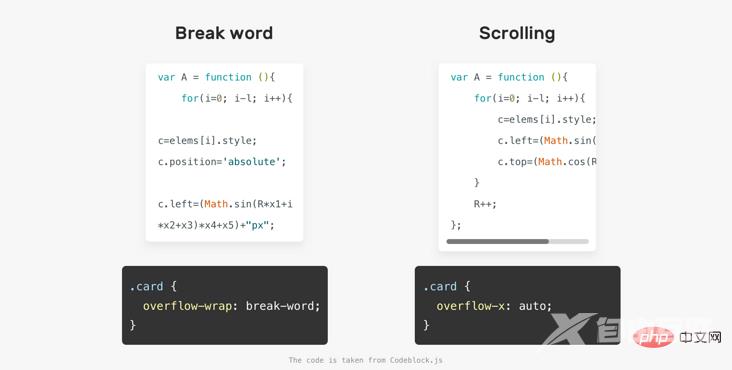 有时候,截断或连接一个单词并不总是可行。 例如,当一个长字换成新行时,JavaScript代码可能会变得难以阅读。 在这种情况下,水平滚动将使阅读体验更好。