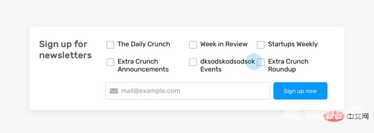 这里有一个复选框列表,其中有一个非常接近它的兄弟项。发生这种情况的原因是网格上没有间距。这是来自Techcrunch网站的一个真实的例子。