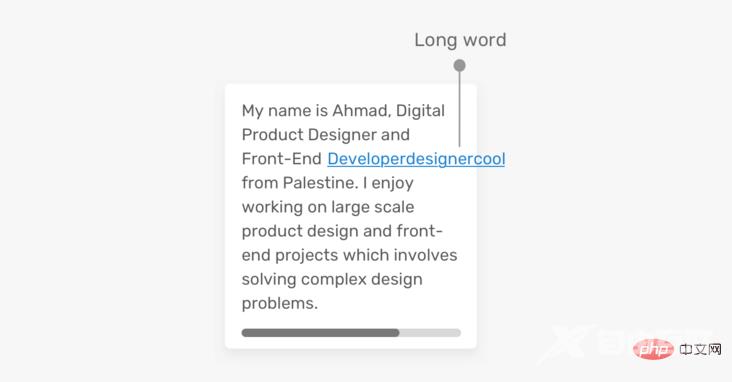 上面有一个很长的单词,它会上容器溢出导致水平滚动。我们可以通过使用overflow-wrap或hyphens来解决这个问题。
