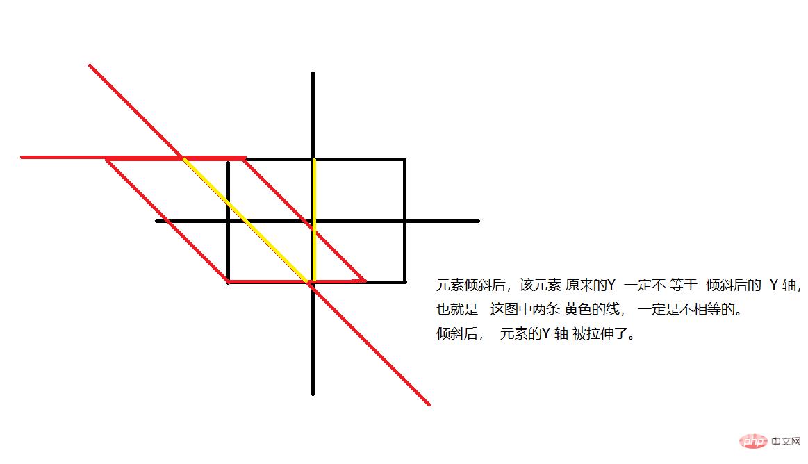 倾斜该元素,里面填的是角度,下面↓ 你会看到,随着元素被倾斜,高度居然不变。聪明的你,一定会知道,高度不变,代表了,Y轴被拉伸了。