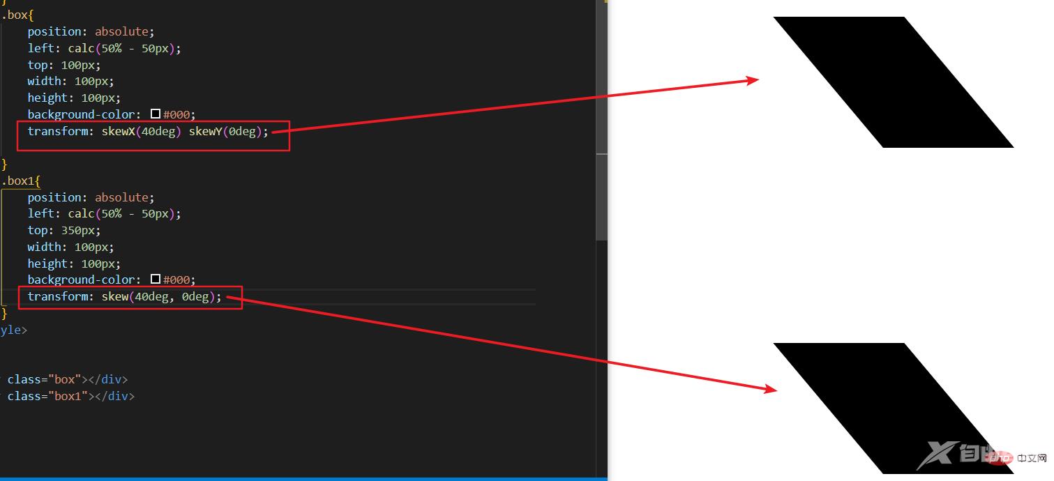 也就是 skewx 和 skewy 的结合体,但是又有不同之处。