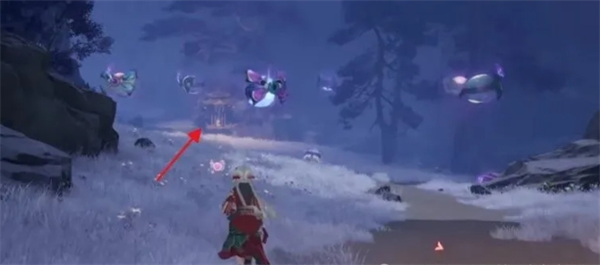 1、先传送到空鸣峡入囗,乘着这条云我们往下飘,沿着这条路直走到尽头。