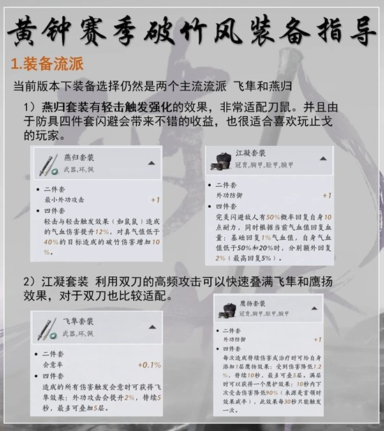当前版本下装备选择仍然是两个主流流派 飞隼和燕归