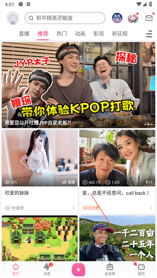 1. 打开哔哩哔哩APP,在首页下方导航栏中点击“我的”选项。