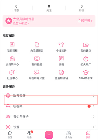 2. 在“我的”页面中找到【联系客服】入口。