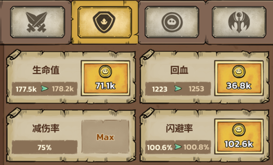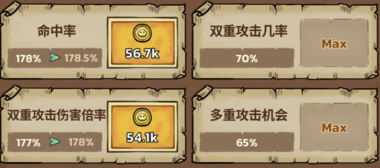 进度核查:进入升级界面,确认当前资源是否足以将核心天赋(如暴击、攻速、攻击范围、吸血等)提升1–2级;