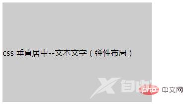 <!DOCTYPE html><html> <head> <meta charset="UTF-8"> <title>css 垂直居中</title> <style> .box{ width: 300px; height: 200px; background: #ccc; /*设置为伸缩容器*/ display: -webkit-box; display: -moz-box; display: -ms-flexbox; display: -webkit-flex; display: flex; /*垂直居中*/ -webkit-box-align: center;/*旧版本*/ -moz-box-align: center;/*旧版本*/ -ms-flex-align: center;/*混合版本*/ -webkit-align-items: center;/*新版本*/ align-items: center;/*新版本*/ } </style> </head> <body> <div class="box">css 垂直居中--文本文字(弹性布局)</div> </body></html>效果: