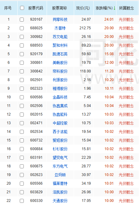 盘中,协鑫集成、爱旭股份、亚玛顿、拓日新能、聚和材料、晶科科技、赛伍技术、中利集团等近20只个股涨停。