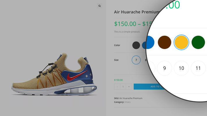 Variation Swatches For WooCommerce 是 WordPress 插件目录中最流行的根据属性而变化样品选项的插件。它可以让用户方便的选择产品颜色、参数或其它属性等,并实时查看其对应的预览图,对于在线商店而言,每一项提升用户体验的功能都是值得的。