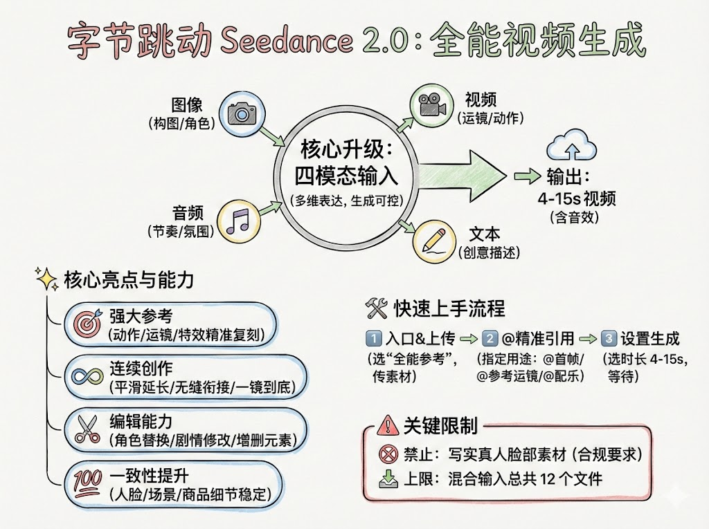 核心升级:支持图像、视频、音频、文本四种模态输入,表达更丰富,生成更可控