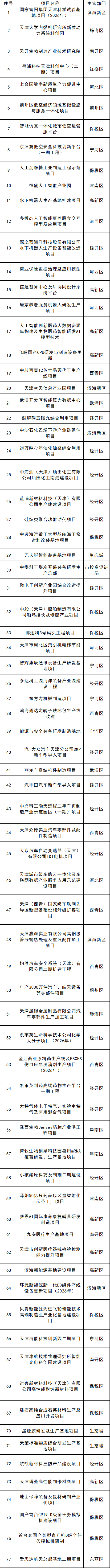天津市发展改革委关于印发天津市2026年重点建设、重点储备项目安排意见的通知