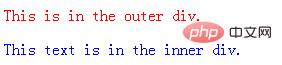 <!DOCTYPE html><html><style type="text/css">div.outer p { color:red;}div:not(.outer) p { color: blue;}</style></head><body><div class="outer"> <p>This is in the outer div.</p> <div class="inner"> <p>This text is in the inner div.</p> </div></div></body></html>