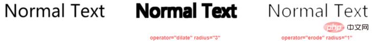<div class="g-text"> <p>Normal Text</p> <p class="dilate">Normal Text</p> <p class="erode">Normal Text</p></div><svg width="0" height="0"> <filter id="dilate"> <feMorphology in="SourceAlpha" result="DILATED" operator="dilate" radius="3"></feMorphology> </filter> <filter id="erode"> <feMorphology in="SourceAlpha" result="ERODE" operator="erode" radius="1"></feMorphology> </filter></svg>
