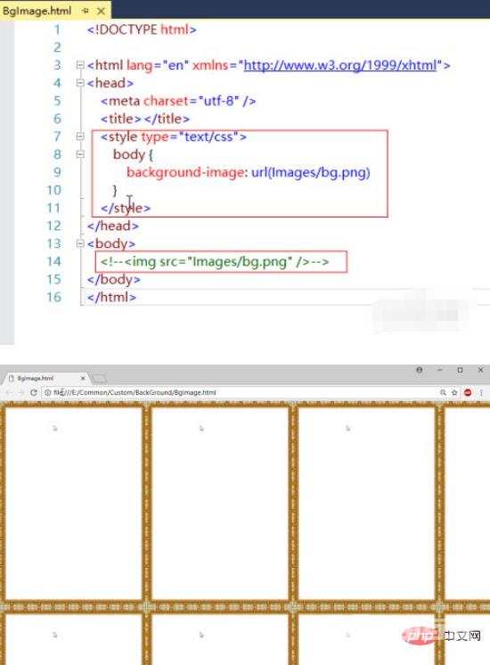 3、通过CSS设置背景图片,默认效果如下,图片被自动重复以铺满窗口