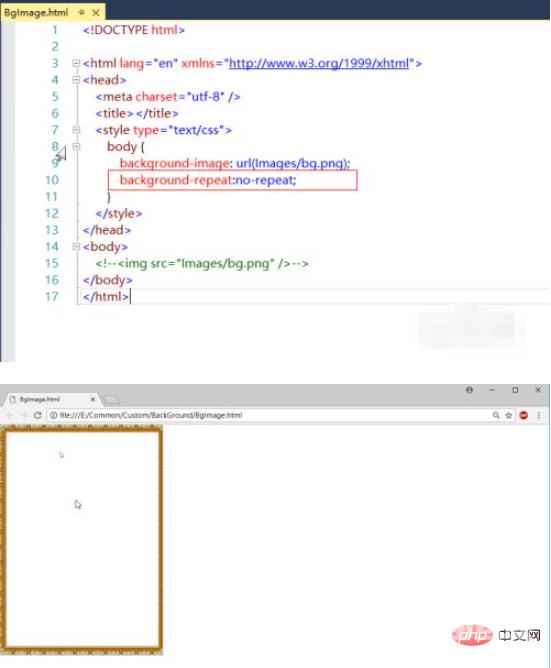 4、通过CSS设置背景图片不重复,此时,图片将不能铺满窗口