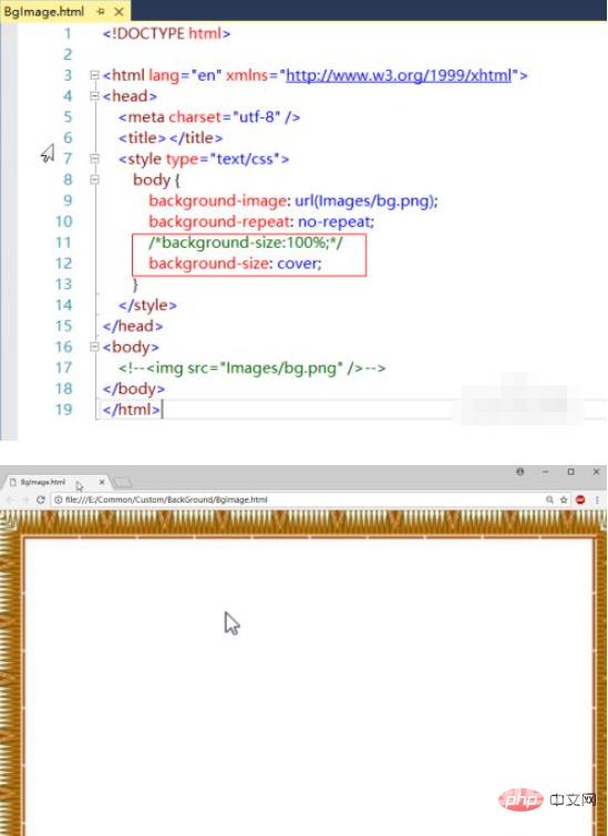 通过css设置背景图片全屏的方法:1、通过CSS的【background-size=100%】属性设置全屏;2、通过【background-repeat】设置图片是否重复。