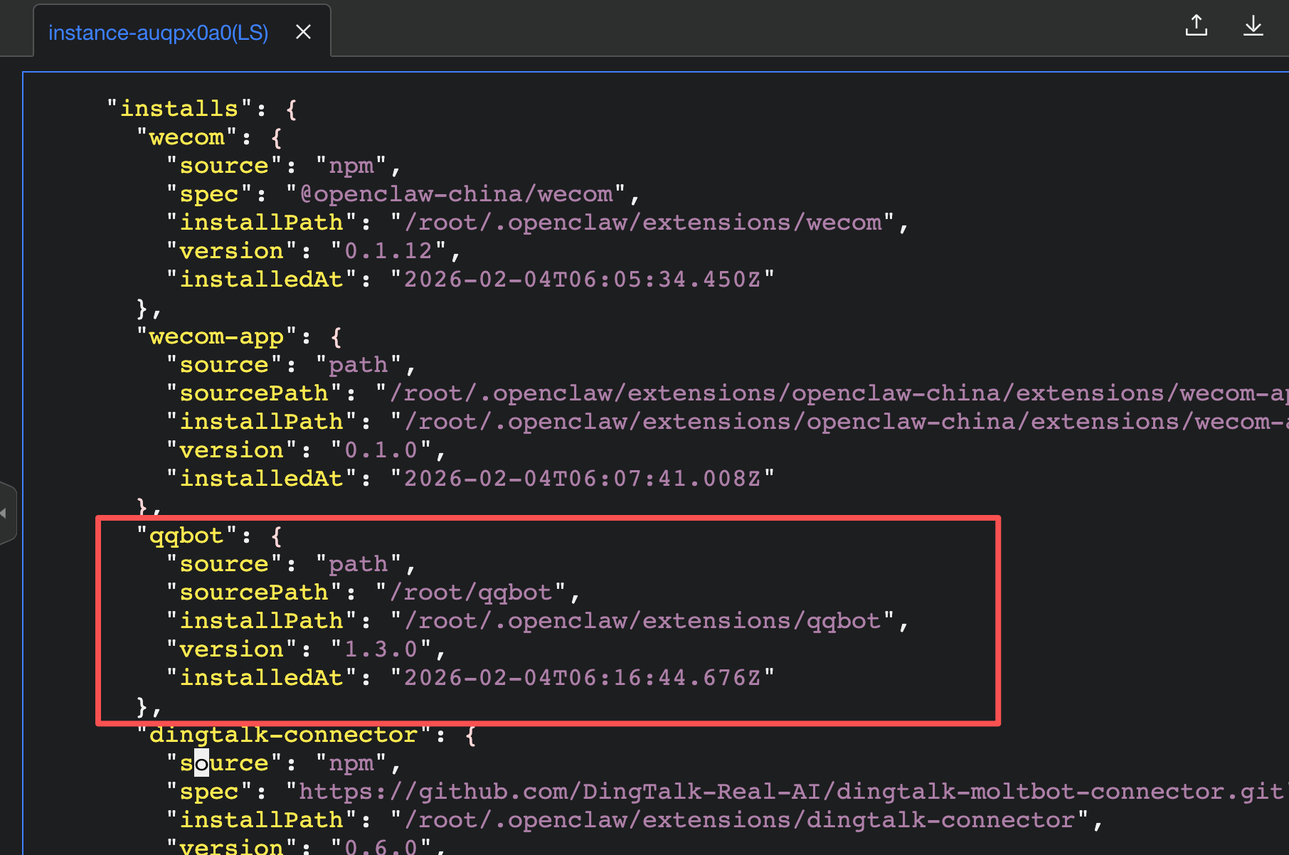 如果之前装过旧版 qqbot 插件,需要先禁用并删除: