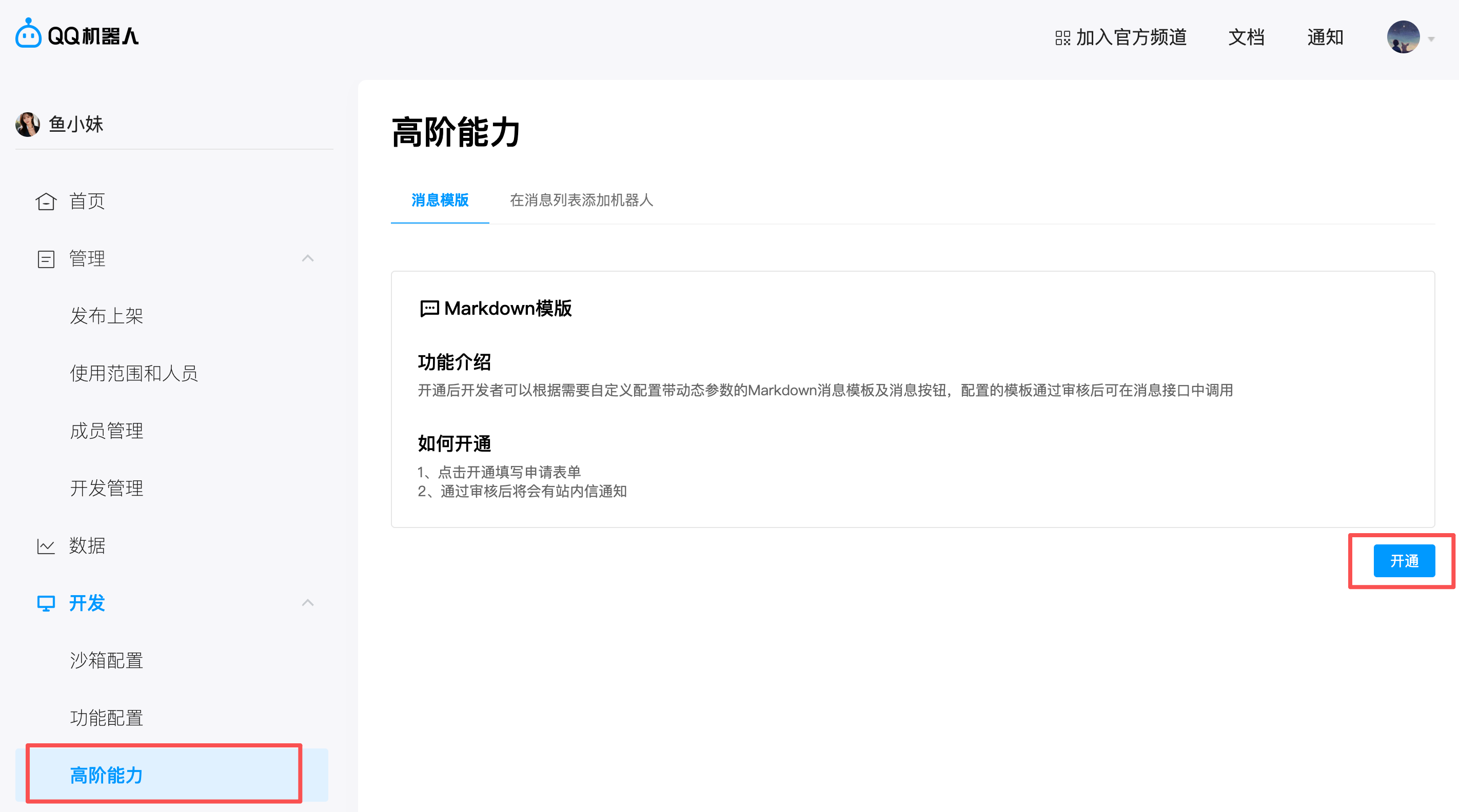 1)打开 QQ 开放平台,注册登录,然后创建 QQ 机器人。
