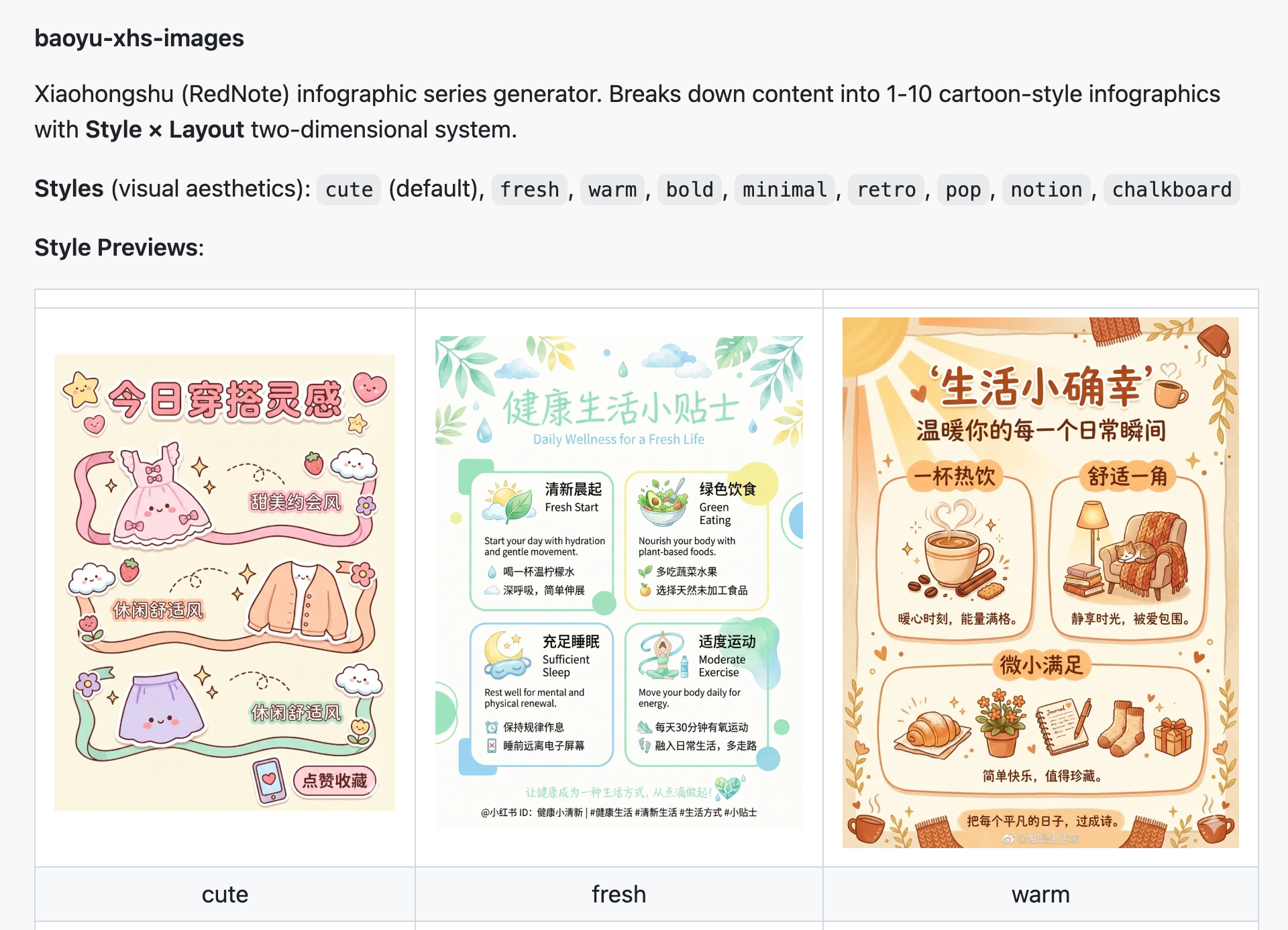 baoyu-skills:宝玉老师自用的 Skills 集合,包括公众号文章写作、PPT 制作、封面图生成、小红书配图、漫画生成等,对内容创作者非常有帮助,直接把大佬的创作工作流复制过来用。