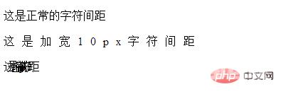 <p>这是正常的字符间距</p><p style="letter-spacing:10px;">这是加宽10px字符间距</p><p style="letter-spacing:-10px;">这是缩减3px字符间距</p>