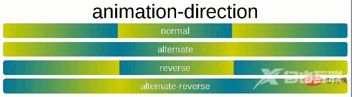 animation-direction 指定动画多次播放时,一次结束,下一次怎么接上一次,如图。