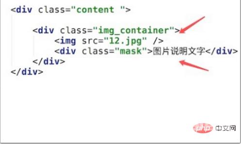 1.首先,看一下HTML,一个img图像控件和一个带有样式的div,其中包含文本。这个就是蒙版遮罩层。