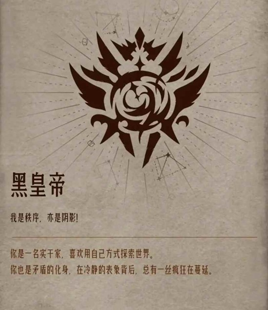 黑皇帝序列是秩序与统治的象征,角色野心勃勃,拥有强烈的掌控欲和坚韧的生存本能,善于利用规则。但负面特质是可能变得极为功利,为达目的不择手段,甚至异化为暴君。